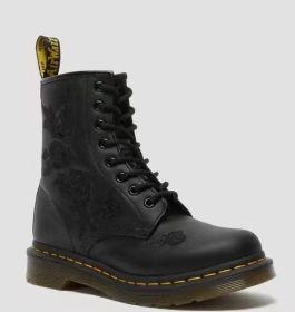 Oversized Lace-up Casual Square Heel Boots Featuring Ethnically Embroidered Martin Boots In (Color: Black, size: 39)